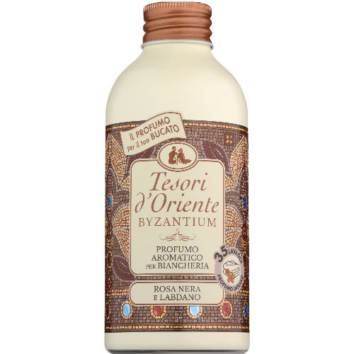 Koncentrovaný parfém na prádlo Tesori d´Oriente Byzantium daruje prádlu jedinečnou intenzivní dlouhotrvající vůni. Esence černé růže v harmonii s teplými tóny Labdanu očaruje vaše smysly a dodává příjemný pocit relaxace. Parfém proniká hluboko do vláken a prádlo tak zůstává svěží a voňavé po hodně dlouhou dobu. Parfém na prádlo neobsahuje změkčovadlo, proto je idální pro všechny druhy tkanin, také pro syntetiku a mikrovlákno.