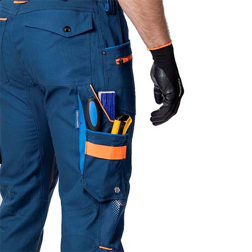 Strečové bavlněné montérkové kalhoty do pasu ze speciálního materiálu Amalytton®, který vyniká zvýšenou pevností a hladkým, jemným povrchem. Sníženou gramáž oceníte díky příjemnému pocitu při nošení. Na exponovaných partiích je použitý odolný a čtyřsměrně elastický materiál Tabiflex®. Kalhoty mají vysoce funkční ergonomický 3D střih SLIM FIT, který zvýrazňuje siluetu. Oblast kolen je zesílená odolným materiálem Oxford s vodoodpudivou úpravou, kapsa na nákoleníky umožňuje použití výztuhy. Kalhoty jsou vybaveny pružným pasovým límcem spolu se skrytým zadním dvojitým poutkem pro pohodlné usazení opasku, vnitřní protiskluzovou páskou a D kroužkem na karabinu. Velké množství praktických kapes. Trojité prošití v namáhaných partiích. Spodní lem nohavic je vyztužený materiálem Oxford, který je odolný proti oděru. Zvýšenou viditelnost uživatele zajišťují dynamické reflexní 3D potisky a hi-vis doplňky. Délku nohavic lze snadno prodloužit o 5 cm.