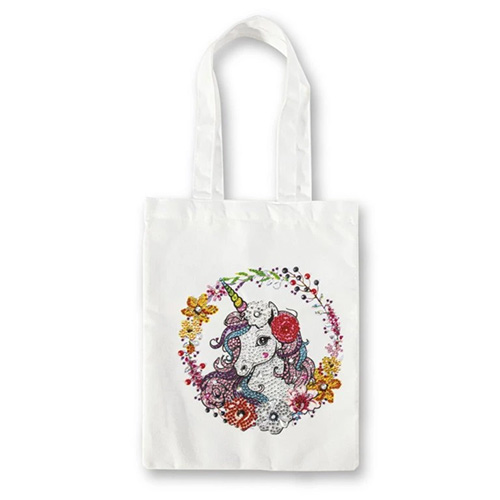 Sada pro diamantové malování "Vyrob si tašku s jednorožcem" je skvělým kreativním projektem, který umožňuje vytvořit vlastní originální tašku s třpytivým motivem jednorožce.