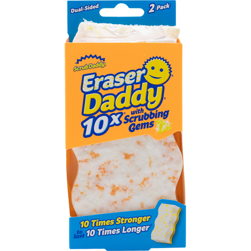 Eraser Daddy 10x je vylepšená verze legendární magické houbičky Eraser Daddy. Je vyrobena z exkluzivního materiálu Power Erase, který je 10 krát odolnější než tradiční melaminové houbičky. To znamená, že si poradí i s těmi nejodolnějšími skvrnami, jako jsou:
