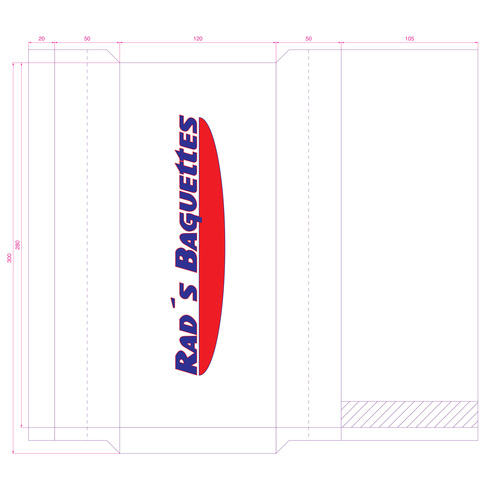 Papírový sáček s tiskem (Rad's Baguettes) - 12x5x28 cm, 1000 ks, nepromastitelný