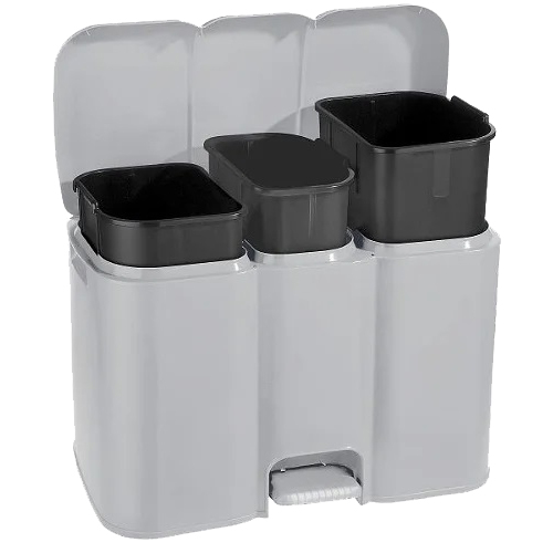 Pedálový koš na recyklaci se třemi přihrádkami a vyjímatelnými kbelíky.
