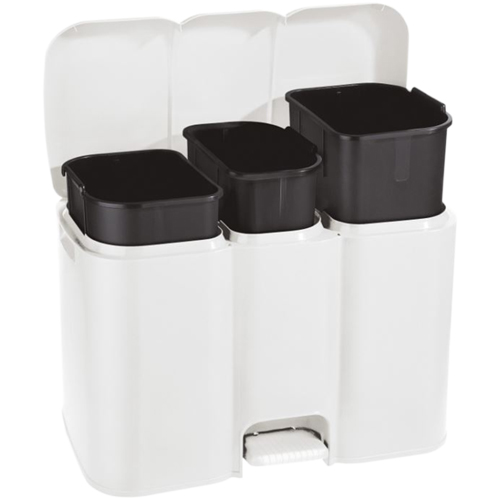 Pedálový koš na recyklaci se třemi přihrádkami a vyjímatelnými kbelíky.