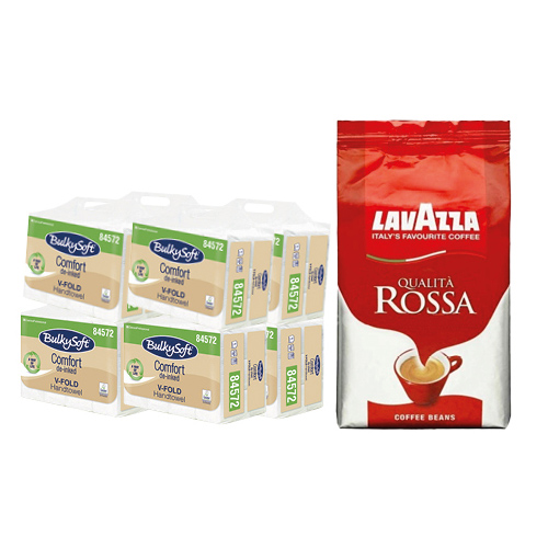 Akční balíček: 8x ručníky bílé Z-Z/3000 ks + zrnková káva Lavaza Rosa, 1 kg.