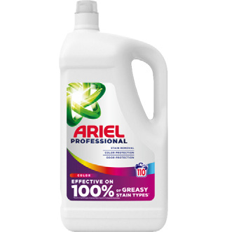 Popis produktu Tekutý prací gel Ariel Professional Color je navržený speciálně pro profesionální použití. Výborně čistí a odstraňuje skvrny, které jsou typické pro profesionální provozy. Spolehlivě odstraňuje i odolné skvrny už při prvním praní a zároveň je k prádlu jemný a šetrný. Na rozdíl od jiných pracích prostředků totiž začíná působit přímo uprostřed praní a přirozeně tak proniká do hloubky vláken. Speciální enzymy ochraňují a zjemňují bavlněná vlákna i jiné druhy tkanin. Udržuje barvy syté i po mnoha vypráních a zanechává prádlo čisté, svěží a provoněné jemnou vůní. Účinný už při teplotě 30 °C. Na odolné skvrny naneste dostatečné množství pracího prostředku a nechte chvíli působit. Poté vložte do pračky a přidejte jednu odměrku tekutého pracího gelu přímo do bubnu a spusťte obvyklý program. Nejlepších výsledků dosáhnete, pokud do bubnu pračky vložíte víčko naplněné čisticím prostředkem, do přihrádky na prací prostředek nevkládejte tekutý prací prostředek.