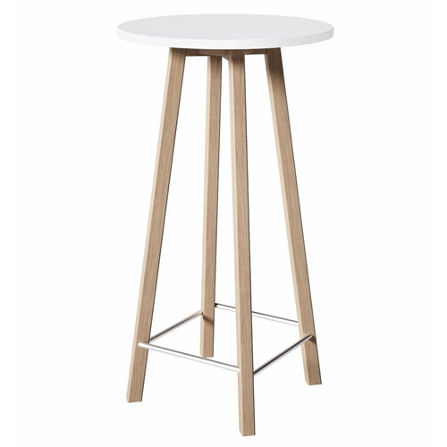 Barový stůl Wood O 60 cm - bílá deska, nohy buk