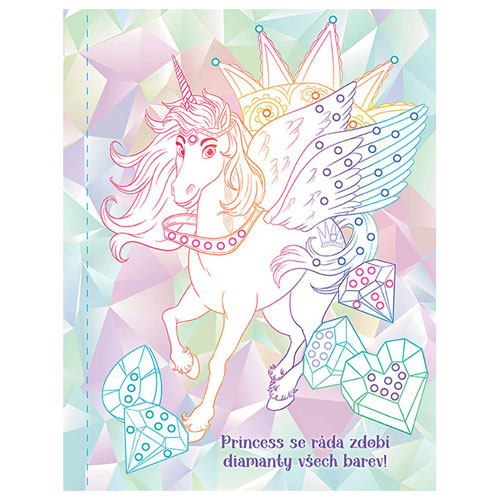 Omalovánky s kamínky – Jednorožci obsahuje 12 stran s krásnými obrázky jednorožců, které si děti mohou vybarvit podle své fantazie. Součástí je také jeden list třpytivých kamínků, kterými lze hotové obrázky dozdobit a dodat jim magický lesk.