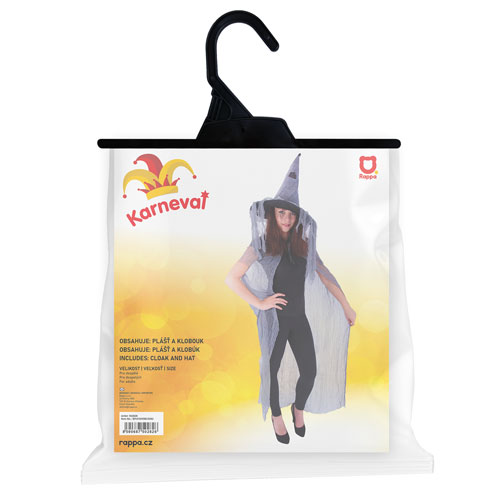 Perfektní souprava pro dospělé na Halloween párty nebo karneval! Balení obsahuje čarodějnický plášť šedé barvy a sladěný klobouk. V těchto exkluzivních doplňcích tě zaručeně nikdo nepřehlédne!