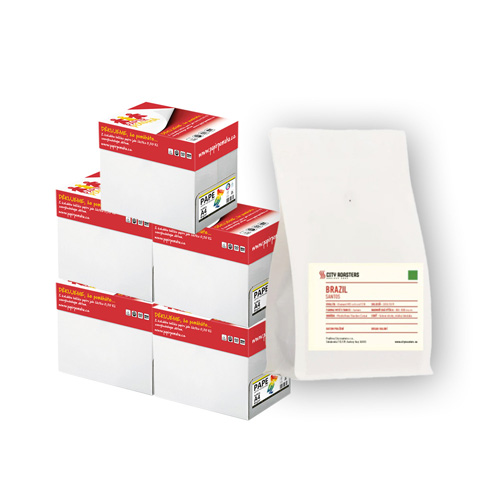 Akce leták - kancelářský papír PAPE - 5x karton + Káva zrnková Brazil Santos 100% Arabic