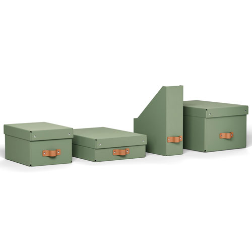 Pevný materiál umožňuje bezpečné stohování, čímž šetří místo, a kožená rukojeť usnadňuje manipulaci i vysouvání z polic nebo zásuvek. Boxy se snadno složí bez použití nářadí a jsou plně recyklovatelné.