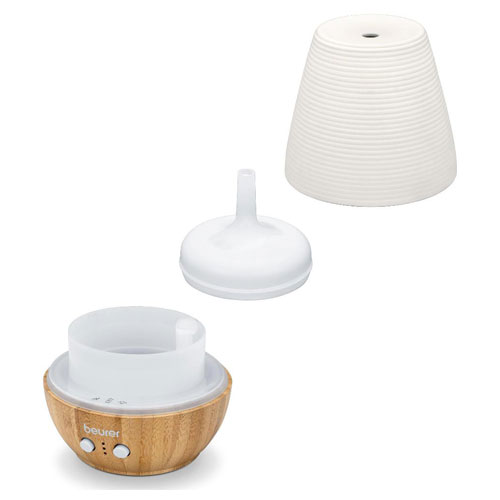 Ultrazvukový aroma difuzér Beurer LA 40 přináší do vaší domácnosti pohodu, relaxaci a čistý design. Díky mikrojemnému ultrazvukovému rozprašování zajišťuje rovnoměrné provonění místnosti a vytváří příjemnou atmosféru doplněnou o wellness světlo s plynulou změnou barev. Kombinace pravého bambusu a porcelánu dodává difuzéru elegantní a přírodní vzhled, který zapadne do každého interiéru.
