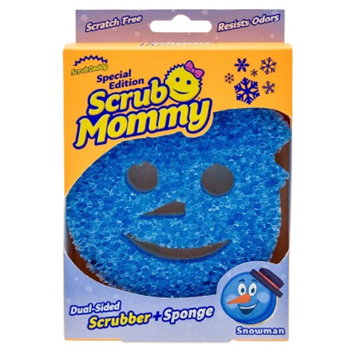 Houbička Scrub Mommy vánoční - modrá, sněhulák