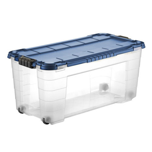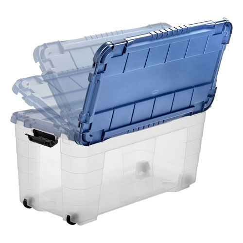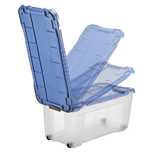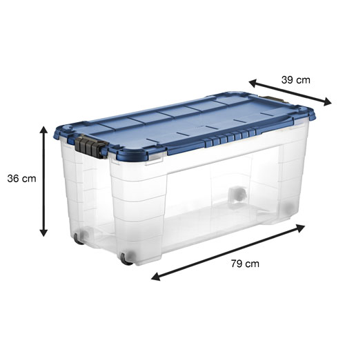 Velký a praktický úložný box s mezinárodně patentovaným víkem, které lze otevírat ze všech čtyř stran bez nutnosti ho sundávat. Díky vestavěným úchytům a možnosti stohování je ideální pro udržení pořádku v domácnosti, kanceláři i garáži. Součástí balení je set koleček pro snadnou manipulaci.