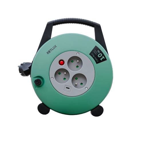 Prodlužovací kabel bubnový 3 zásuvky + USB-C, Retl - 10 m