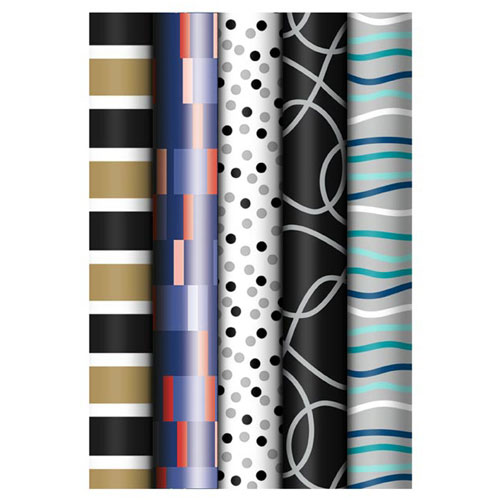 Stylový celoroční balicí papír s moderními geometrickými motivy v elegantní kombinaci černé, šedé, modré a zlaté. Mix 5 originálních vzorů umožňuje sladit každý dárek podle příležitosti i osobnosti obdarovaného. Vhodný pro narozeniny, firemní dárky i slavnostní balení během celého roku.