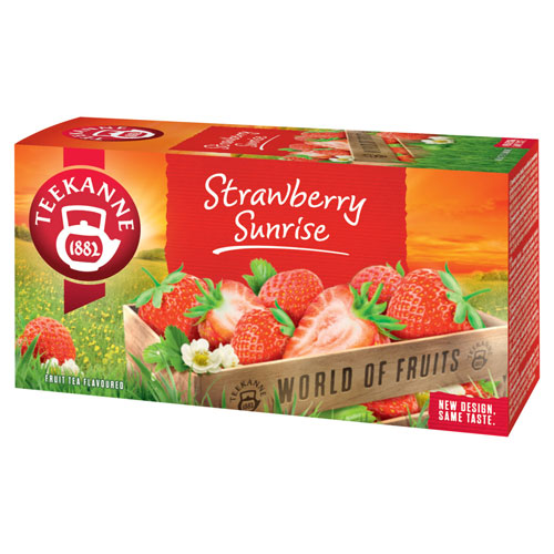 Ovocný čaj plný letní svěžesti. Vychutnejte si slastný zážitek s čajem TEEKANNE World of Fruits Strawberry Sunrise – výjimečně chutným nápojem s lahodnou jahodovou příchutí. Skvěle chutná horký i studený a je ideální volbou pro osvěžení i příjemné chvíle pohody pro celou rodinu.