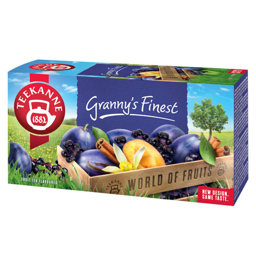 Ovocný čaj inspirovaný babiččiným tajným receptem. Objevte kouzlo tradičních chutí v čaji TEEKANNE World of Fruits Granny's Finest. Harmonická kombinace zralého ovoce s příchutí švestek, černého bezu, vanilky a skořice vytváří hřejivý a plný chuťový zážitek, který potěší celou rodinu a navodí pocit domácí pohody.