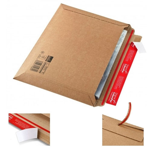 Kartonová obálka ColomPac z pevné hnědé vlnité lepenky – mikrovlny je ideální pro bezpečné zasílání prospektů, časopisů, dokumentů, katalogů, fotografií, kalendářů, tiskovin, knih, DVD i textilu. Díky extrémně pevné konstrukci a příčnému plnění spolehlivě chrání obsah proti ohnutí a poškození během přepravy. Parametry samouzavírací proužek ColomPac® integrovaný proužek pro snadné otevření boční plnění pevná lepenka zamezující ohnutí extrémně pevné provedení vnitřní výška: 570 mm vnitřní šířka: 420 mm výška plnění: max. 50 mm klopa: 50 mm barva: hnědá potisk: resy znaky