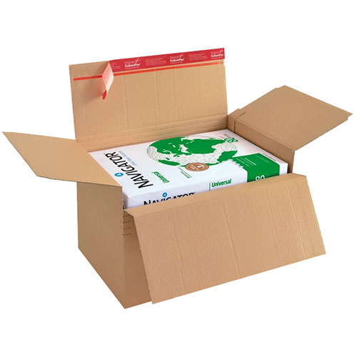 Výškově nastavitelná poštovní krabice s plně automatickým dvojitým dnem umožňuje snadné přizpůsobení výšky pomocí předem připravených ohybových značek. Složení zabere jen pár vteřin a bezpečný samolepicí uzávěr ColomPac® šetří čas i náklady. Integrovaný odtrhávací pásek zajišťuje pohodlné otevření bez nutnosti další manipulace. Ideální řešení pro e-shopy a zasilatelství.